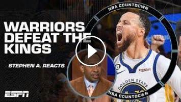 Stephen A. Smith, Mike Greenberg and Jalen Rose react to the Golden State Warriors' 126-125 win over the Sacramento Kings in their Game 4 matchup in the first round of the 2023 NBA Playoffs. The series is now tied, 2-2.