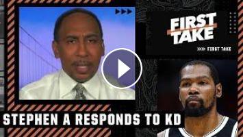 On First Take, Stephen A. Smith responds to Kevin Durant's tweet about him.