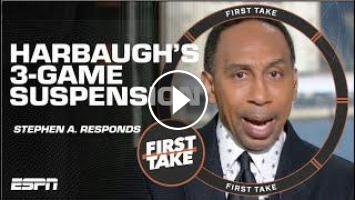 On First Take, Stephen A. Smith, Dan Orlovsky and Shannon Sharpe join Molly Qerim to discuss Michigan and whether the Big Ten’s suspension of Jim Harbaugh for three games was the correct decision.