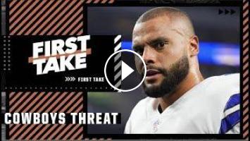 Stephen A. Smith is on First Take reacting to the idea of the Cowboys being a big threat once Dak Prescott is back.