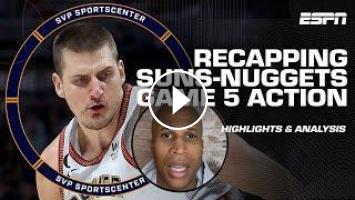 SportCenter's Scott Van Pelt runs back top highlight plays and moments from the Denver Nuggets' 17-point blowout victory over the Phoenix Suns in Game 5 of the Western Conference Semifinals before Richard Jefferson reacts with his biggest takeaways as the Nuggets extend their series lead to 3-2 in the 2023 NBA Playoffs.
