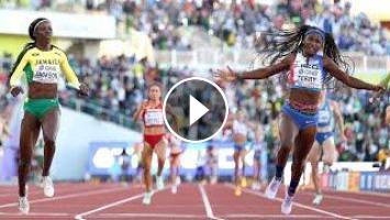 The American team of Melissa Jefferson, Abby Steiner, Jenna Prandini, and TeeTee Terry stunned the star-studded Jamaican squad for a surprising world title in the women's 4x100m relay