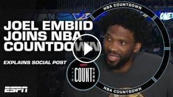 Joel Embiid joins Paul George, Malika Andrews, Kendrick Perkins, Stephen A. Smith and Michael Wilbon on NBA Countdown to discuss his social media post regarding Jrue Holiday, his health and more.