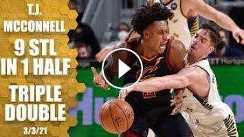 Watch the highlights as T.J. McConnell sets an NBA record with nine steals in one half and finishes with a triple-double (16 points, 13 assists, 10 steals) on 8-of-8 shooting in Indiana Pacers vs. Cleveland Cavaliers.