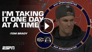 Tom Brady addresses the media following the Tampa Bay Buccaneers' 31-14 loss to the Dallas Cowboys in the Wild Card round of the NFL Playoffs.