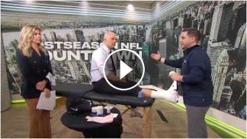 On NFL Countdown, Matt Hasselbeck gets his ankle taped by a New York Giants trainer to display what Patrick Mahomes will be playing through in the NFL playoffs.