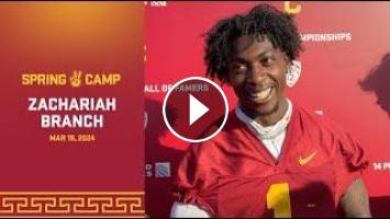 Trojan wide receiver Zachariah Branch spoke to the media following USC’s first practice of Spring camp.