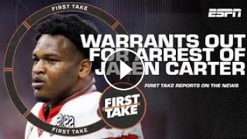 First Take reports on the news that police have secured arrest warrants for former Georgia star Jalen Carter stemming from the top NFL draft prospect's alleged involvement in a fatal crash involving teammate Devin Willock.