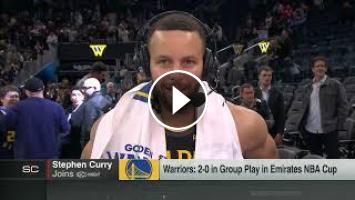 Stephen Curry joins SportsCenter after the Golden State Warriors' 123-118 win over the Memphis Grizzlies in NBA Cup group play.