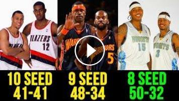 Who would’ve thought that winning 50 games will only get you the eight-seed, right? That happened to these Nuggets. This was an offensive firepower of a roster that included Allen Iverson in his only full season with the team and Carmelo Anthony who was coming into his own as a player. The Answer and Melo each averaged around 26 points per game. A young JR smith was also there, as were Kenyon Martin and Marcus Camby, who was one of the best defenders in the second half of the decade. Oh and who remembers Linaz Kleiza and Eduardo Najera? George Karl led this group to 50 wins that year.Yet, their reward for that was the eight seed and a first-round sweep. You’ll see which team eliminated them later on in the video. The second best offense in the league that year, was sort of being offset by the turnovers. Near the top in that category as well. The Nuggets simply couldn’t take care of the ball.