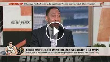 JJ Redick joins Stephen A. Smith on First Take to react to Nikola Jokic being voted NBA MVP.