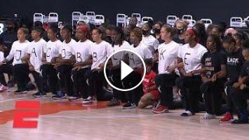 Members of four WNBA teams meet together on the court and take a knee as all three games that were scheduled for Wednesday were postponed. Atlanta Dream center (2:40) Elizabeth Williams delivers a statement explaining the decision to not play.