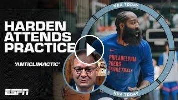 Adrian Wojnarowski joins Malika Andrews, Ramona Shelburne, Chiney Ogwumike and Kendrick Perkins on NBA Today to report on James Harden's participation at practice with the Philadelphia 76ers amid a trade request to the Los Angeles Clippers.