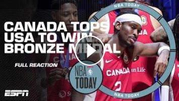 NBA Today’s Malika Andrews, Ramona Shelburne, Ros Gold-Onwude, Brian Windhorst and Marc J. Spears react to Team USA losing to Canada in the bronze medal game at the 2023 FIBA World Cup.