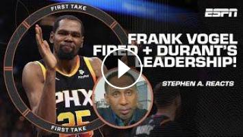 On First Take, Stephen A. Smith, Kendrick Perkins and Chiney Ogwumike react to the firing of Phoenix Suns head coach Frank Vogel and how coaching turnover has affected Kevin Durant.